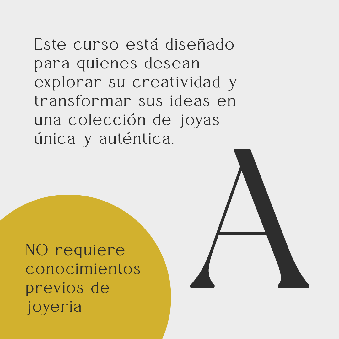 - En 8 sesiones aprenderás a conceptualizar y desarrollar tu Colección de Joyas de Autor.