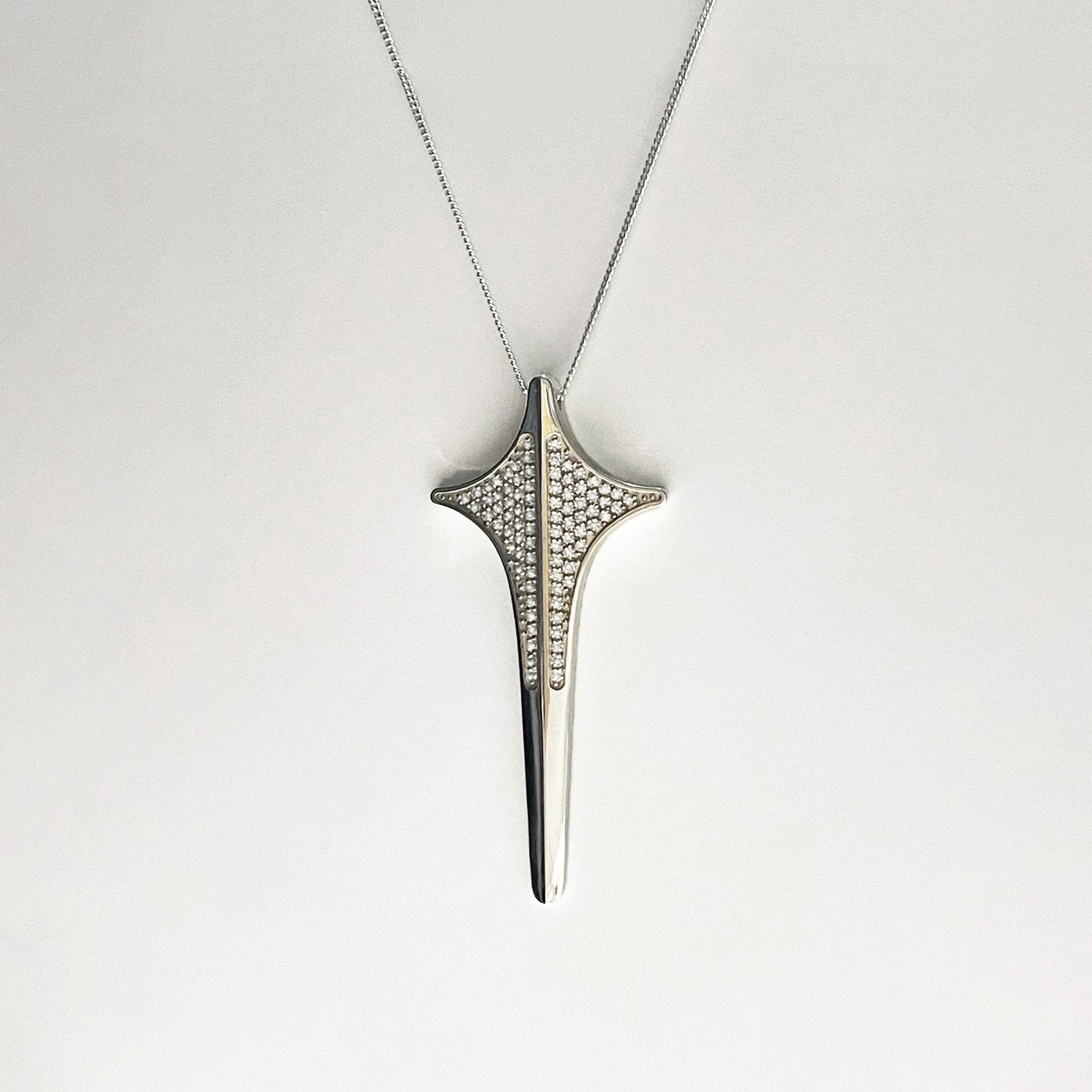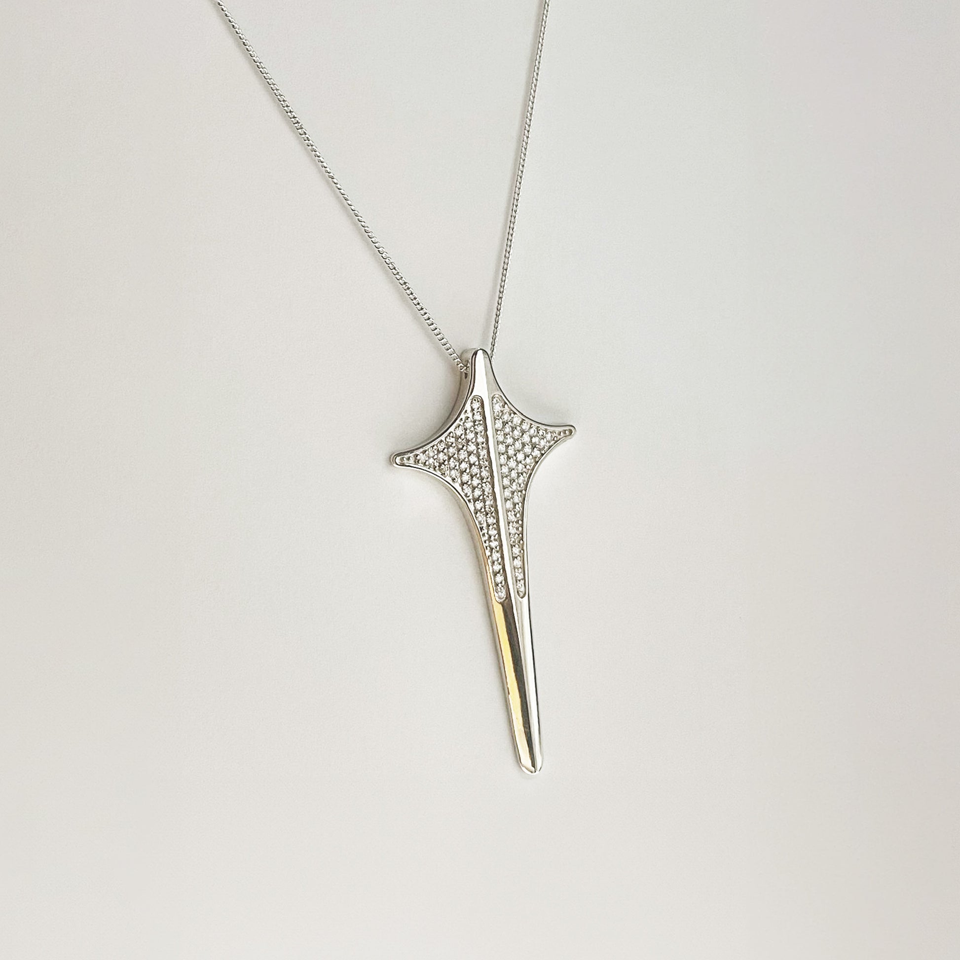 Our natural diamonds are of the highest quality, classified as "E-F" color and "VVS2-VS1" clarity, ensuring exceptional sparkle with minimal color and clarity imperfections. Measuring 57mm in length, this pendant is designed to capture attention and exude grace. Let this piece be a radiant reminder of your inner light and the boundless energy of the universe, a timeless symbol of luxury and spiritual connection.